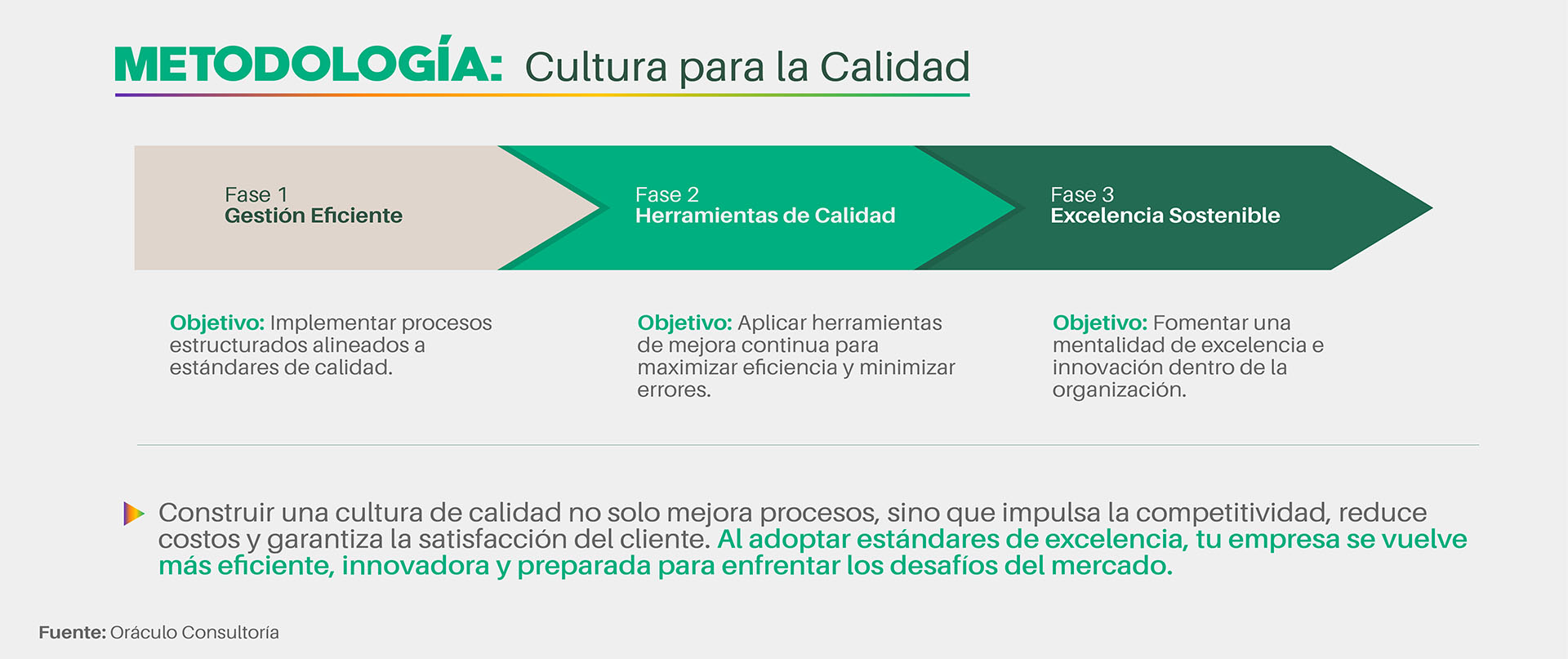En un mercado exigente, la calidad es un diferenciador clave. En Oráculo Consultoría, fomentamos una cultura de mejora continua, optimización de procesos y adopción de estándares internacionales, impulsando eficiencia, competitividad e innovación.